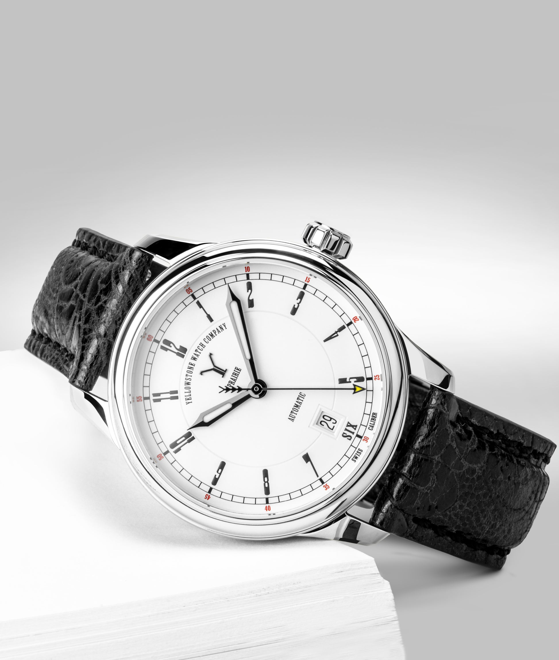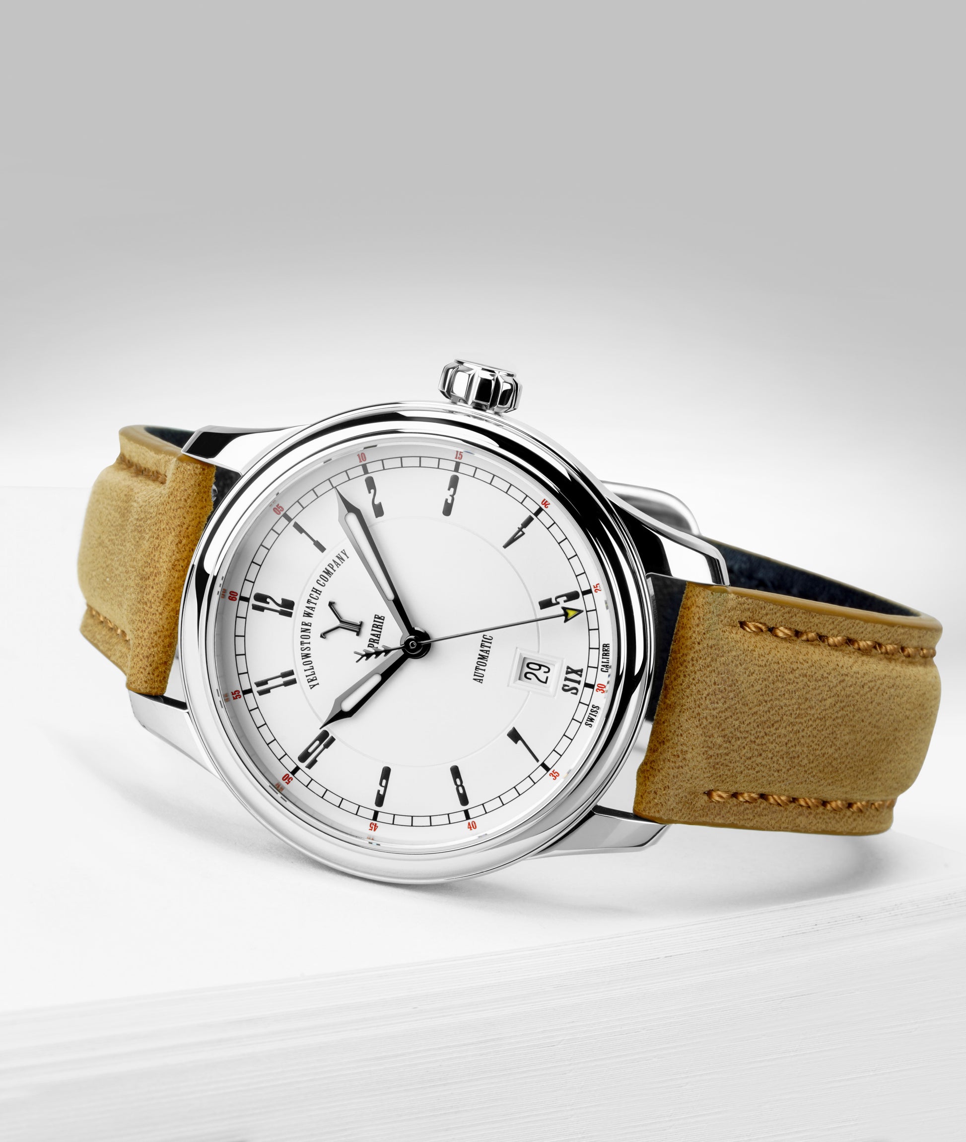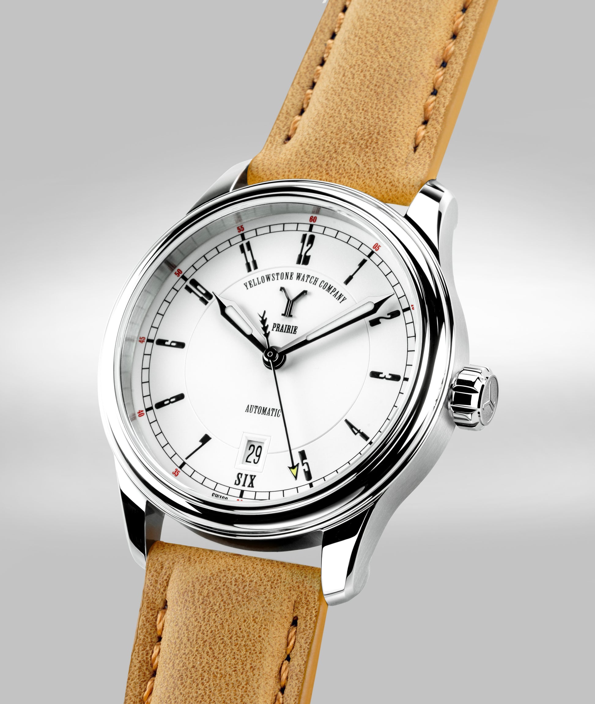 The Prairie Edition introduced by Yellowstone Watch Company is in the spirit of a wagon wheel design that is reminiscent of the covered prairie wagons pioneers used to traverse the vast prairies of the American West.